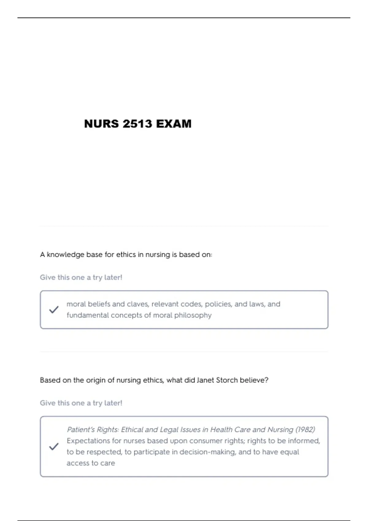 NURS 2513 STUDY QUESTIONS AND VERIFIED ANSWERS