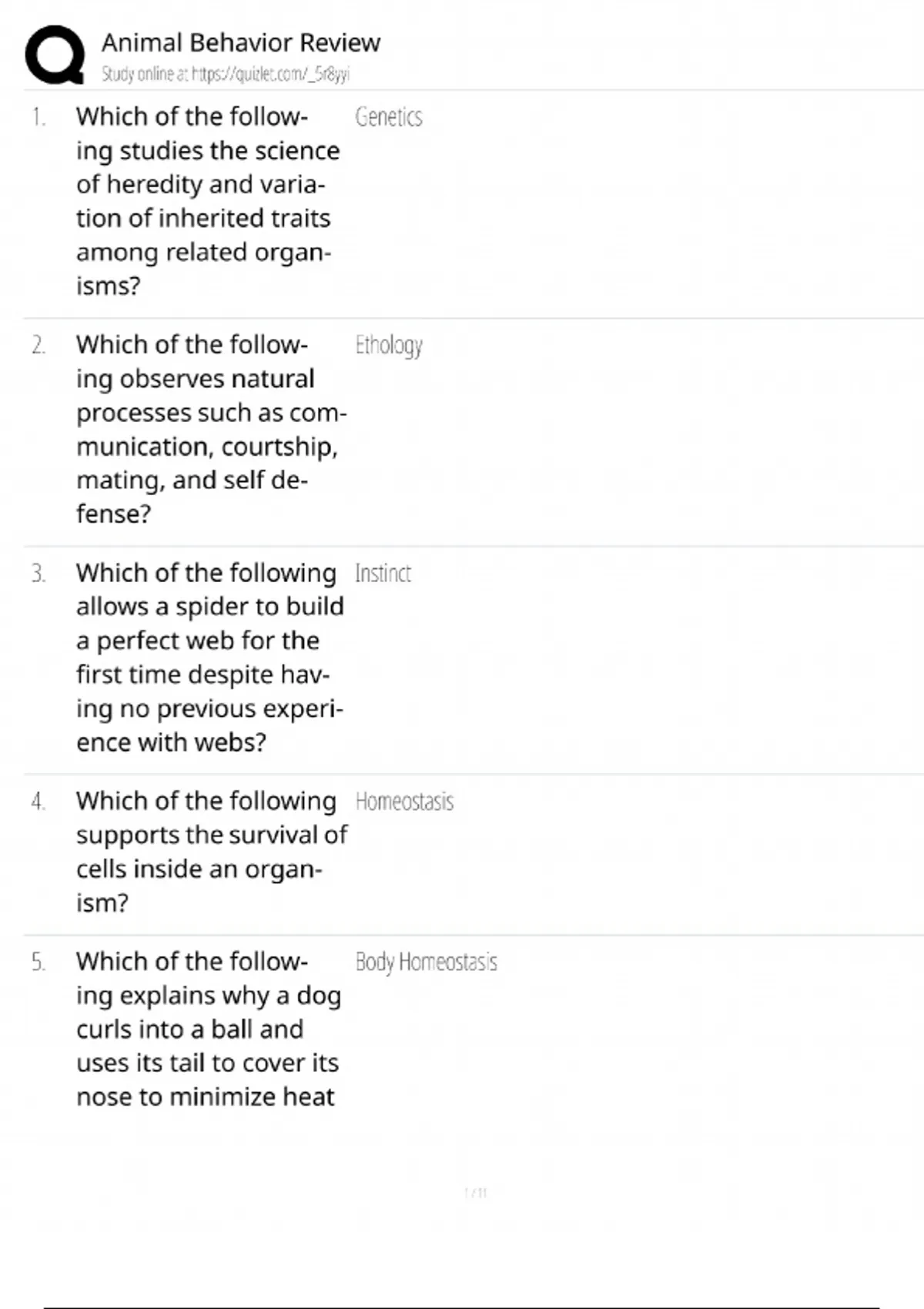 Animal Behavior Review / Ethology & Training Certification / 2025 Study Guide / Score 100% / Test Bank