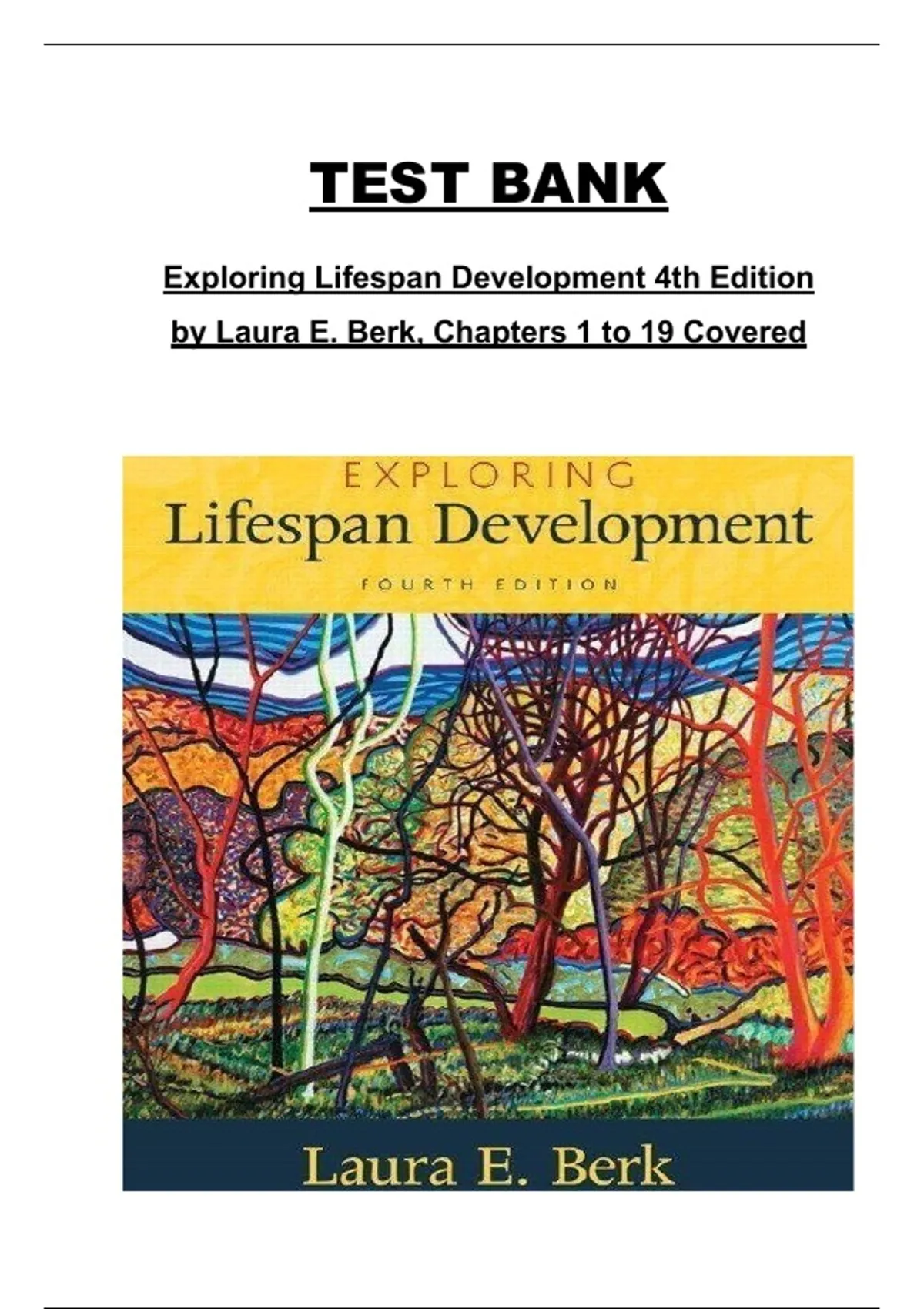 This document provides the complete Test Bank for Chapters 1–19 of Exploring Lifespan Development, 4th Edition by Laura E. Berk. It includes comprehensive exam-style questions with verified answers covering physical, cognitive, emotional, and social development from infancy through late adulthood. The content addresses major developmental theories, research methods, and real-world applications, structured to support effective exam preparation and deep understanding of lifespan development concepts.