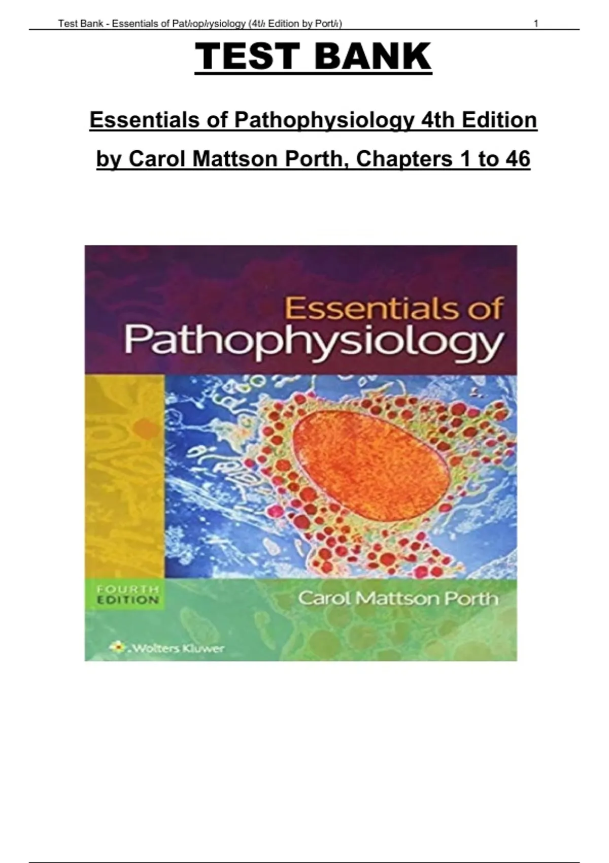 , Test Bank - Essentials of Patℎopℎysiology (4tℎ Edition by Portℎ) 4