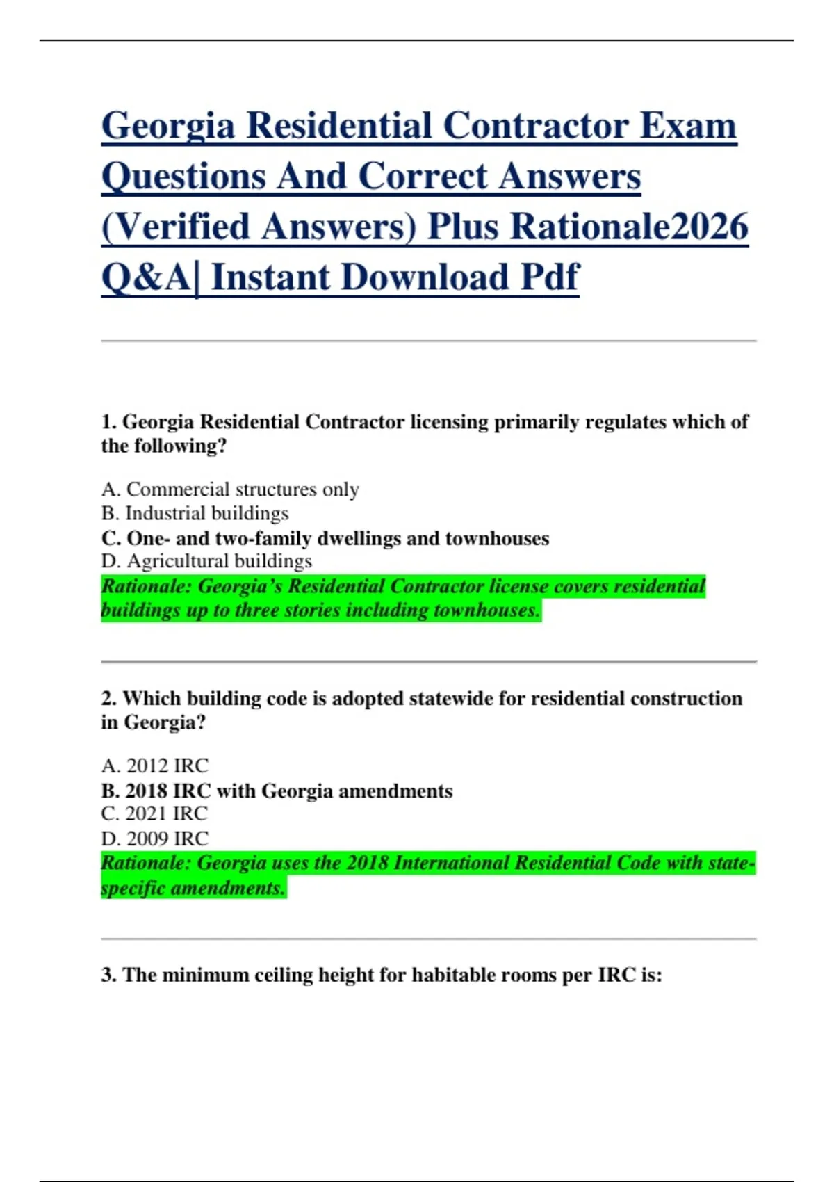 Rationale: Georgia’s Residential Contractor license covers residential