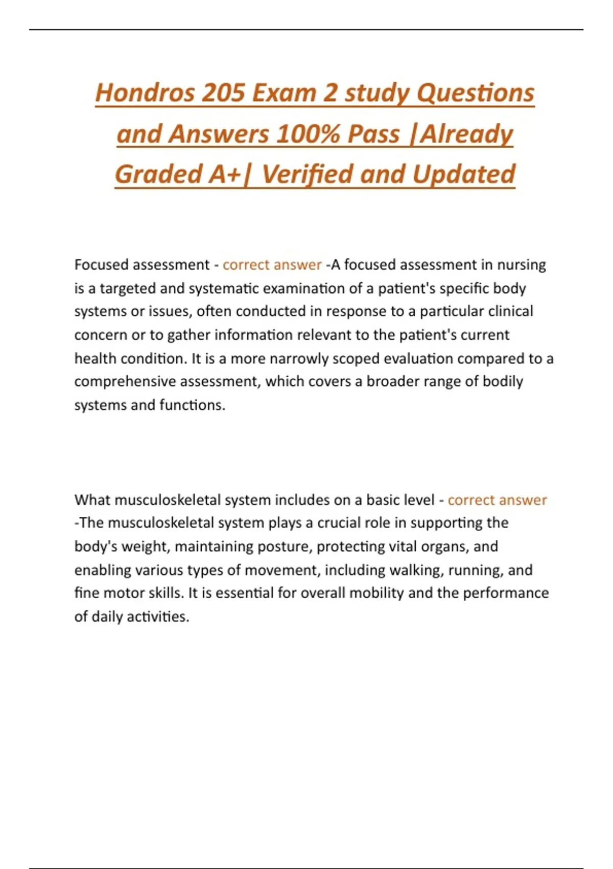 Hondros 205 Exam 2 study Questions and Answers 100% Pass |Already Graded A+| Verified and Updated