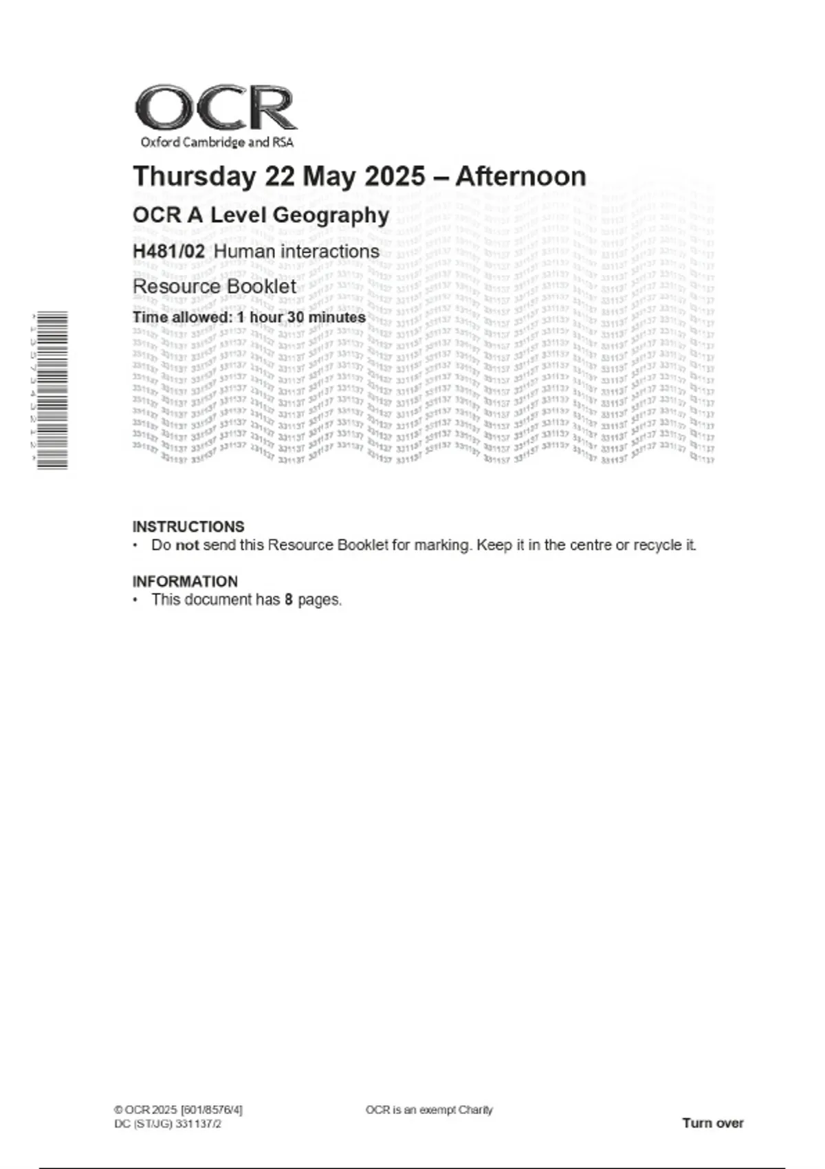 OCR A Level Geography H481/02 Human interactions Resource Booklet