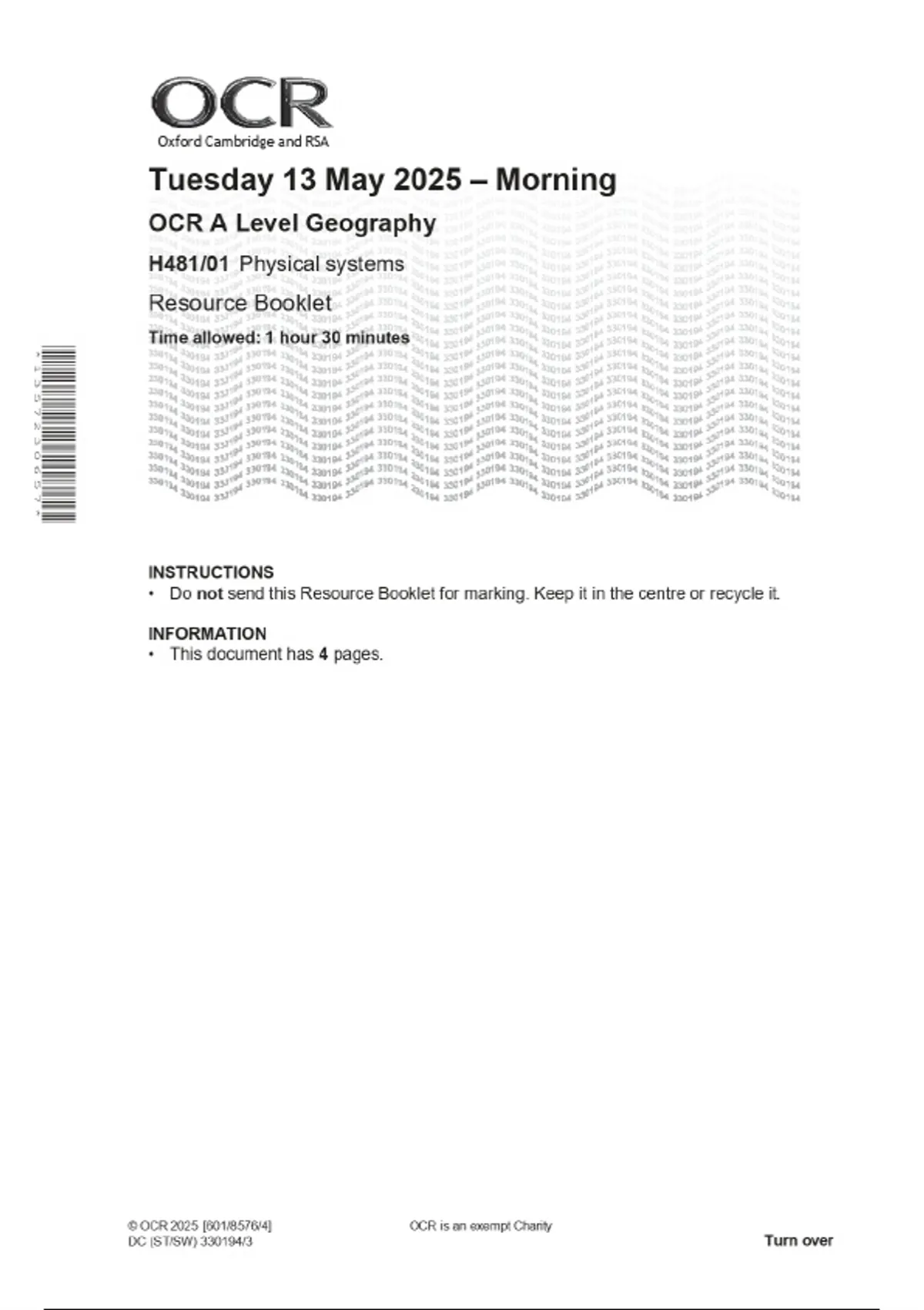 OCR A Level Geography H481/01 Physical systems Resource Booklet