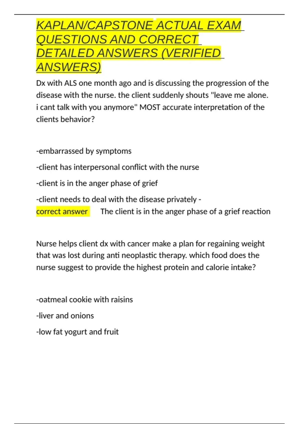 , KAPLAN/CAPSTONE ACTUAL EXAM