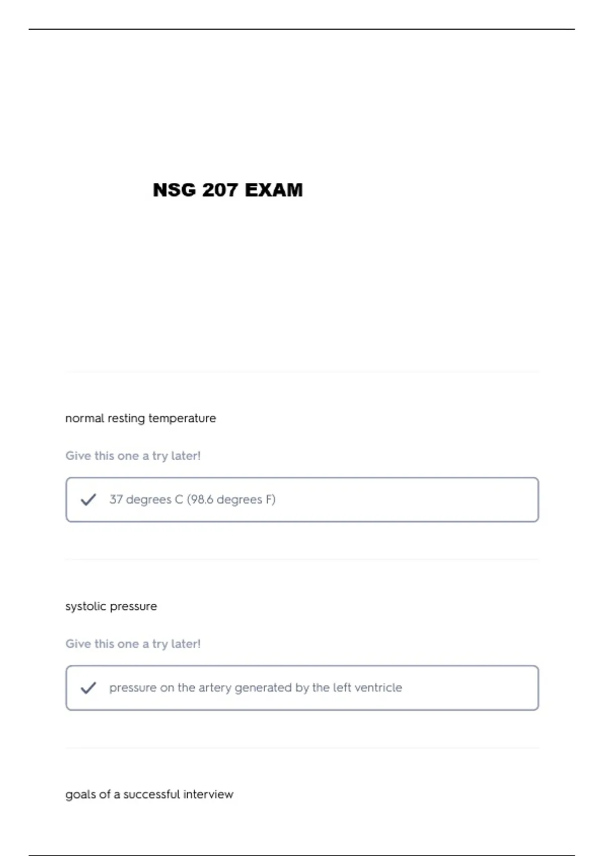 NSG 207 QUIZ 1 QUESTIONS AND VERIFIED ANSWERS