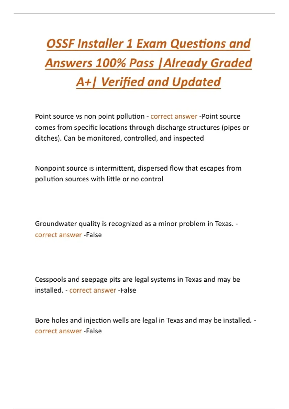 Point source vs non point pollution - correct answer -Point source