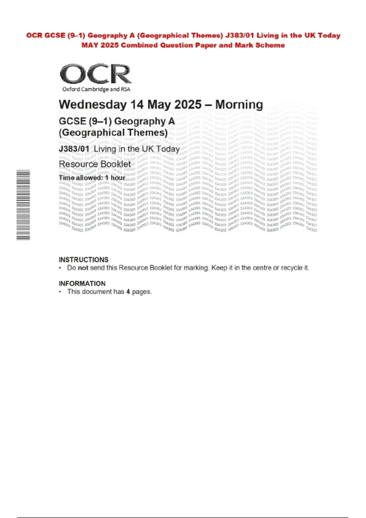 OCR GCSE (9–1) Geography A (Geographical Themes) J383/01 Living in the UK Today MAY 2025 Combined Question Paper and Mark Scheme