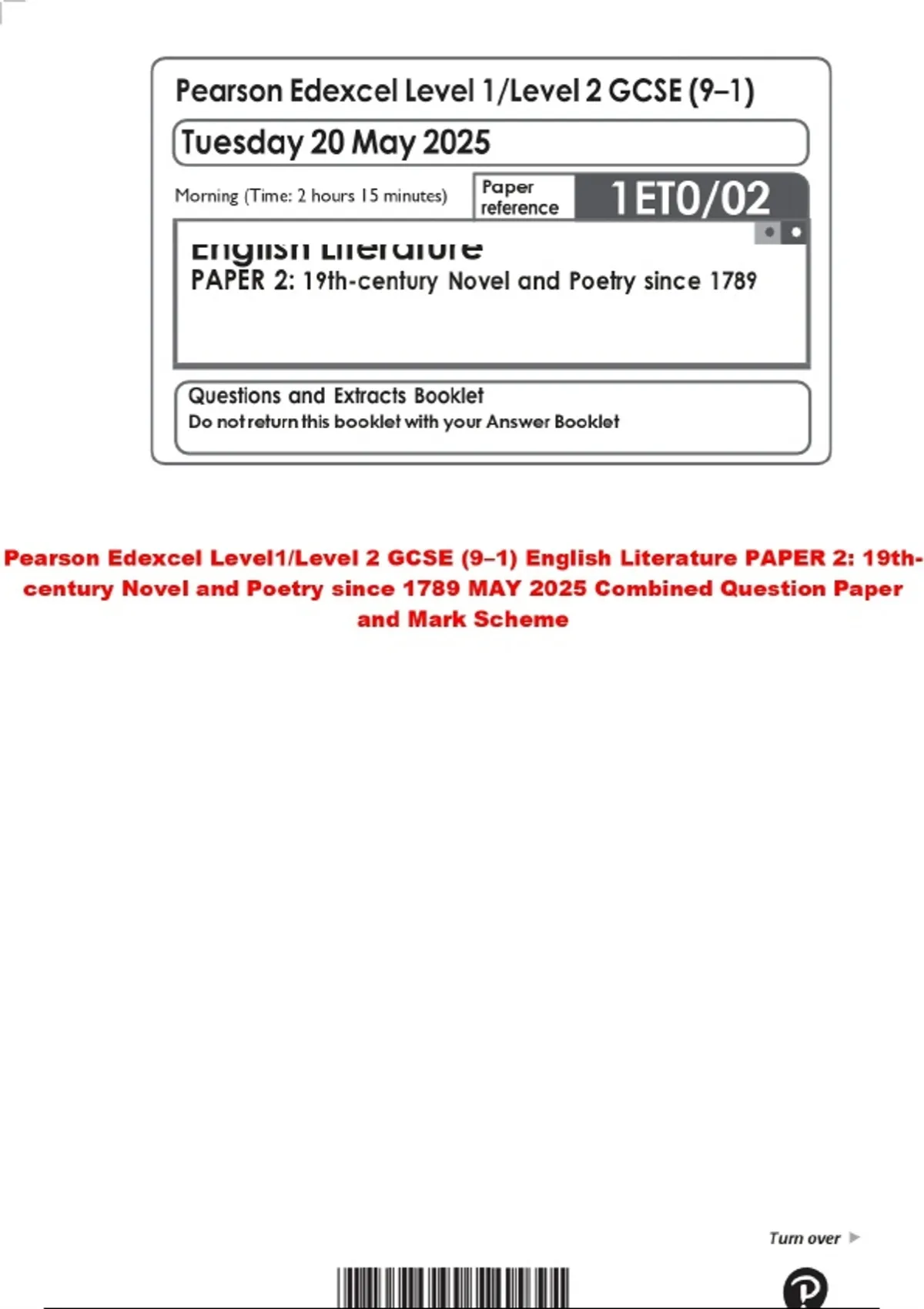 Pearson Edexcel Level1/Level 2 GCSE (9–1) English Literature PAPER 2: 19th century Novel and Poetry since 1789 MAY 2025 Combined Question Paper and Mark Scheme