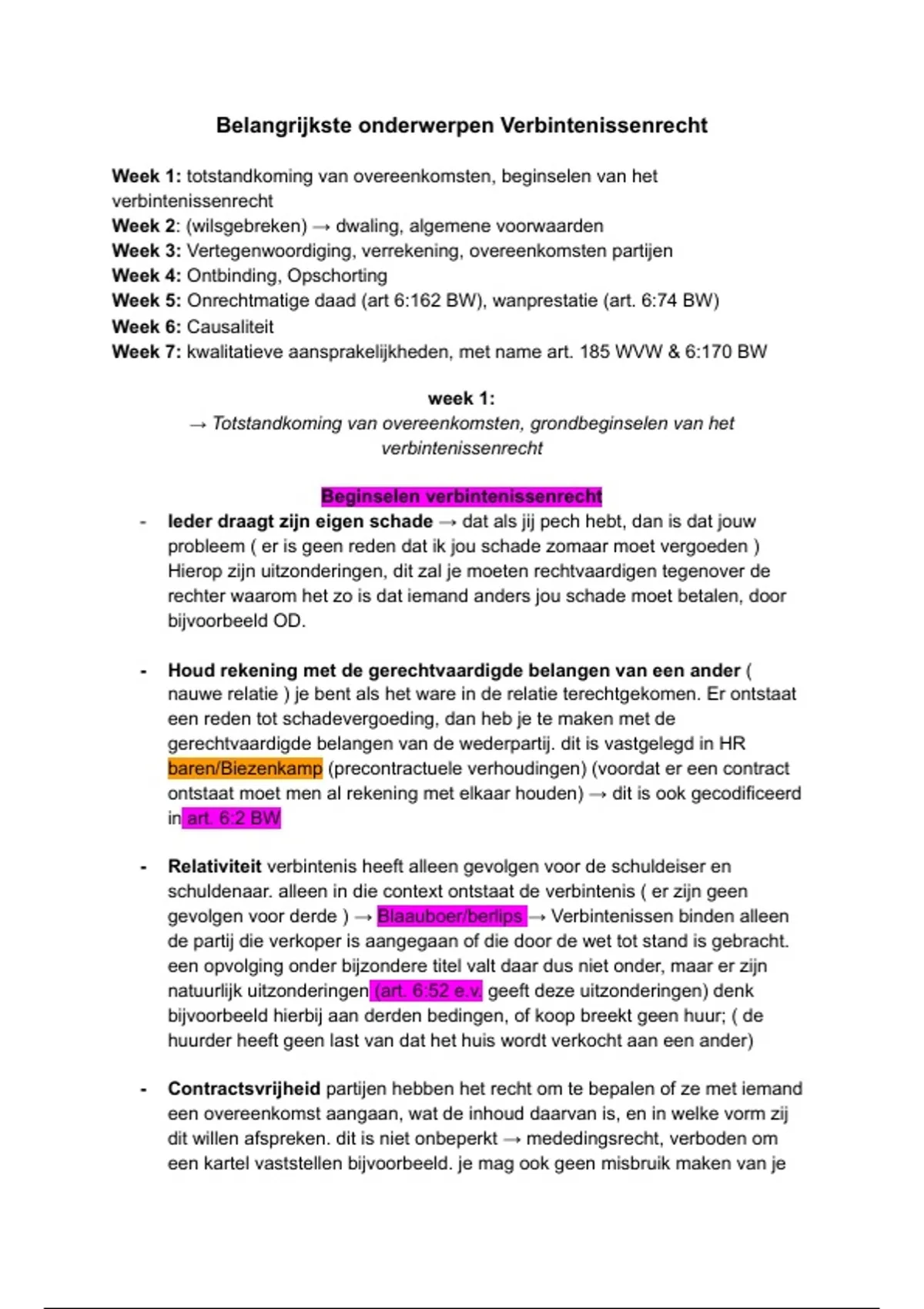 Een overzicht van alle belangrijke onderwerpen van het vak verbintenissenrecht.