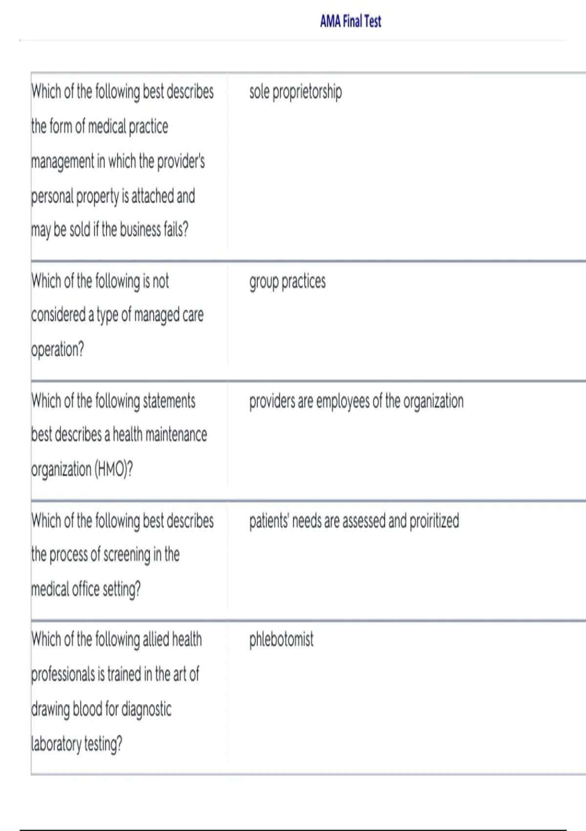 AMA Final Test | Practice Questions & Study Guide PDF