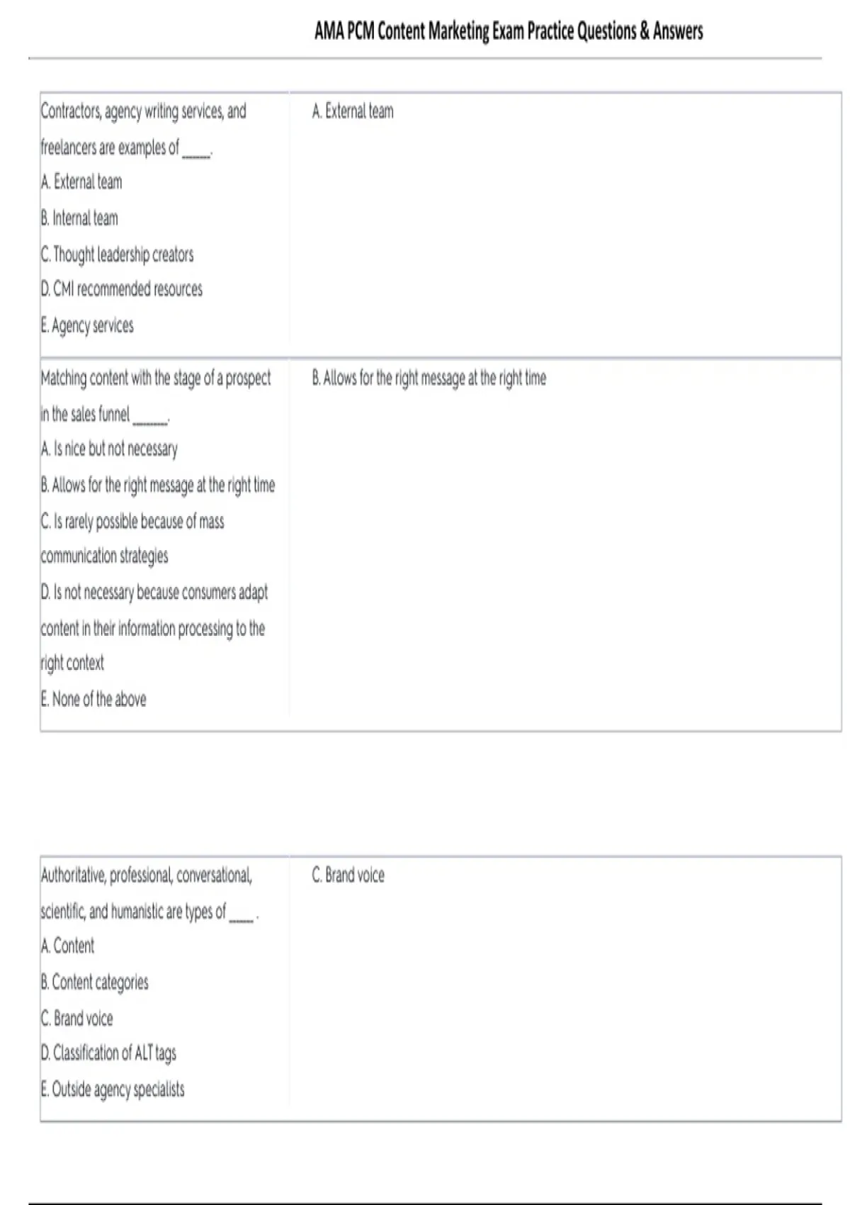, AMA PCM Content Marketing Exam Practice Questions & Answers