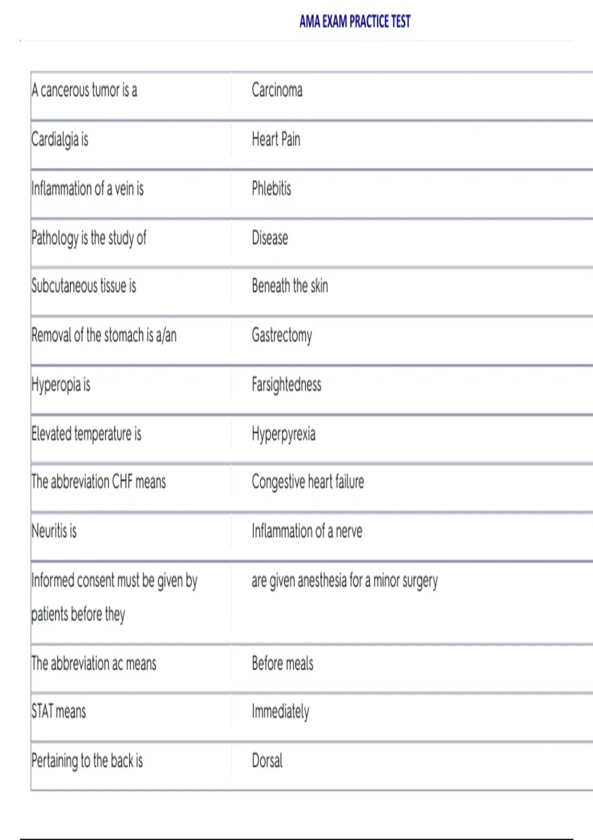 AMA EXAM PRACTICE TEST