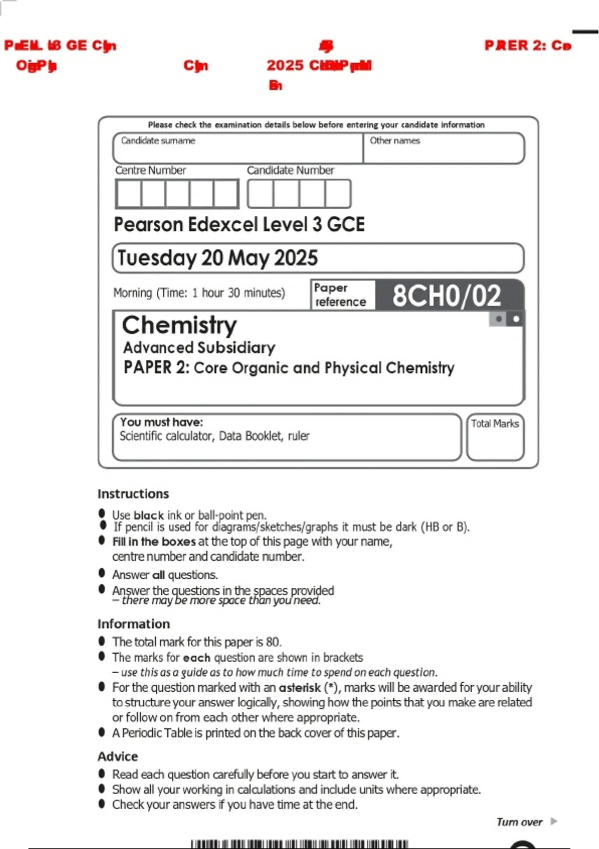 BUNDLE:::Pearson Edexcel Level 3 GCE Chemistry 2025 Combined Question Paper and Mark Scheme