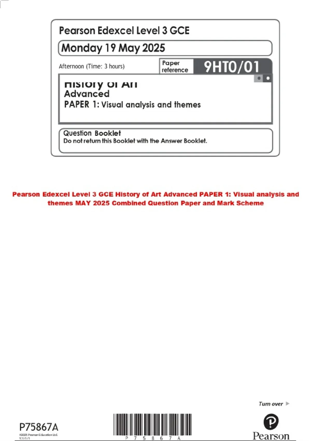 BUNDLE:::Pearson Edexcel Level 3 GCE History of Art Advanced PAPER 2025 Combined Question Paper and Mark Scheme