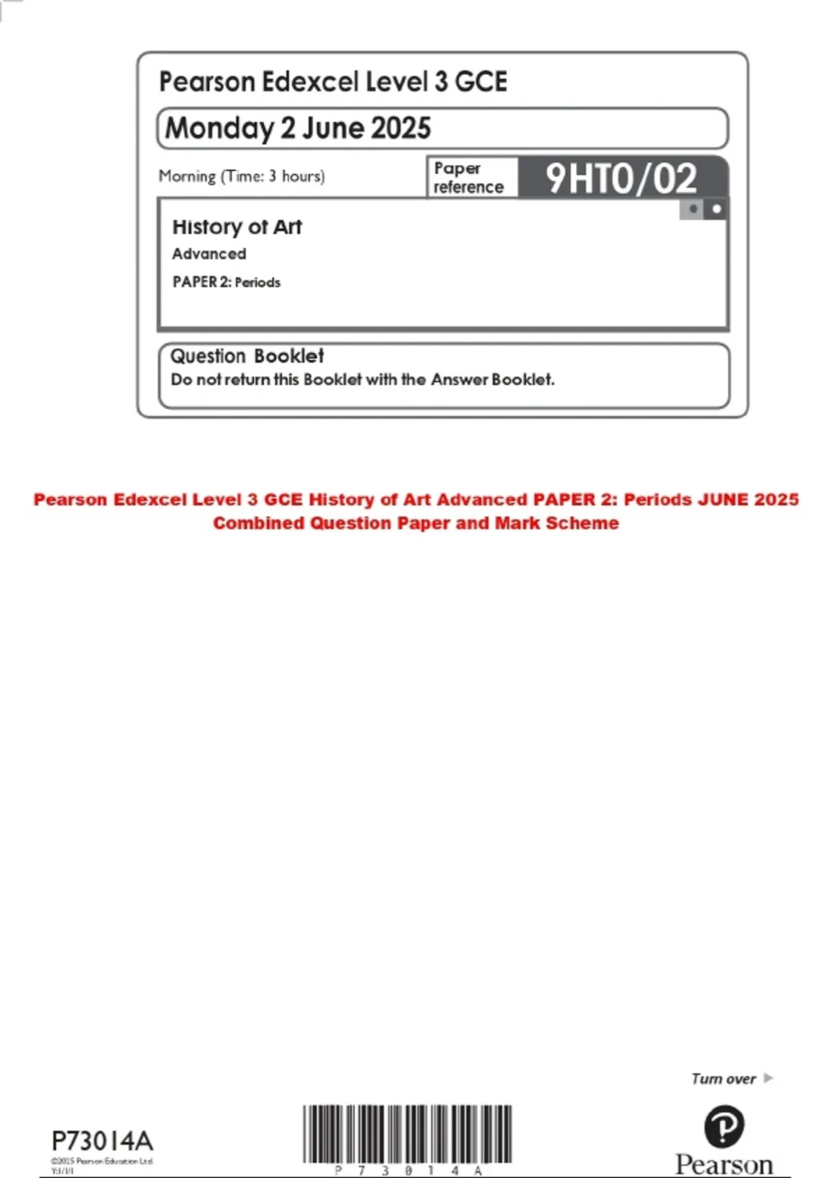 BUNDLE:::Pearson Edexcel Level 3 GCE History of Art Advanced PAPER 2025 Combined Question Paper and Mark Scheme