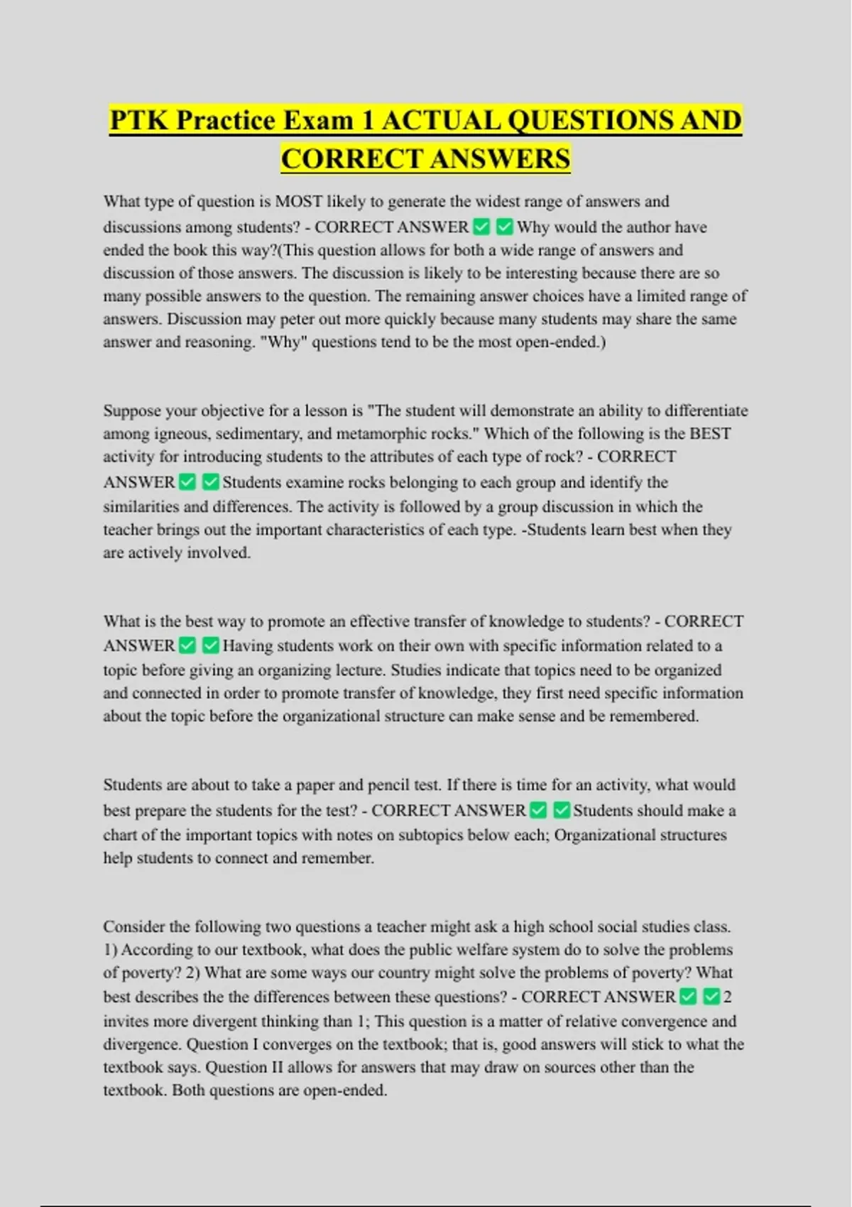 best prepare the students for the test? - CORRECT ANSWER Students should make a