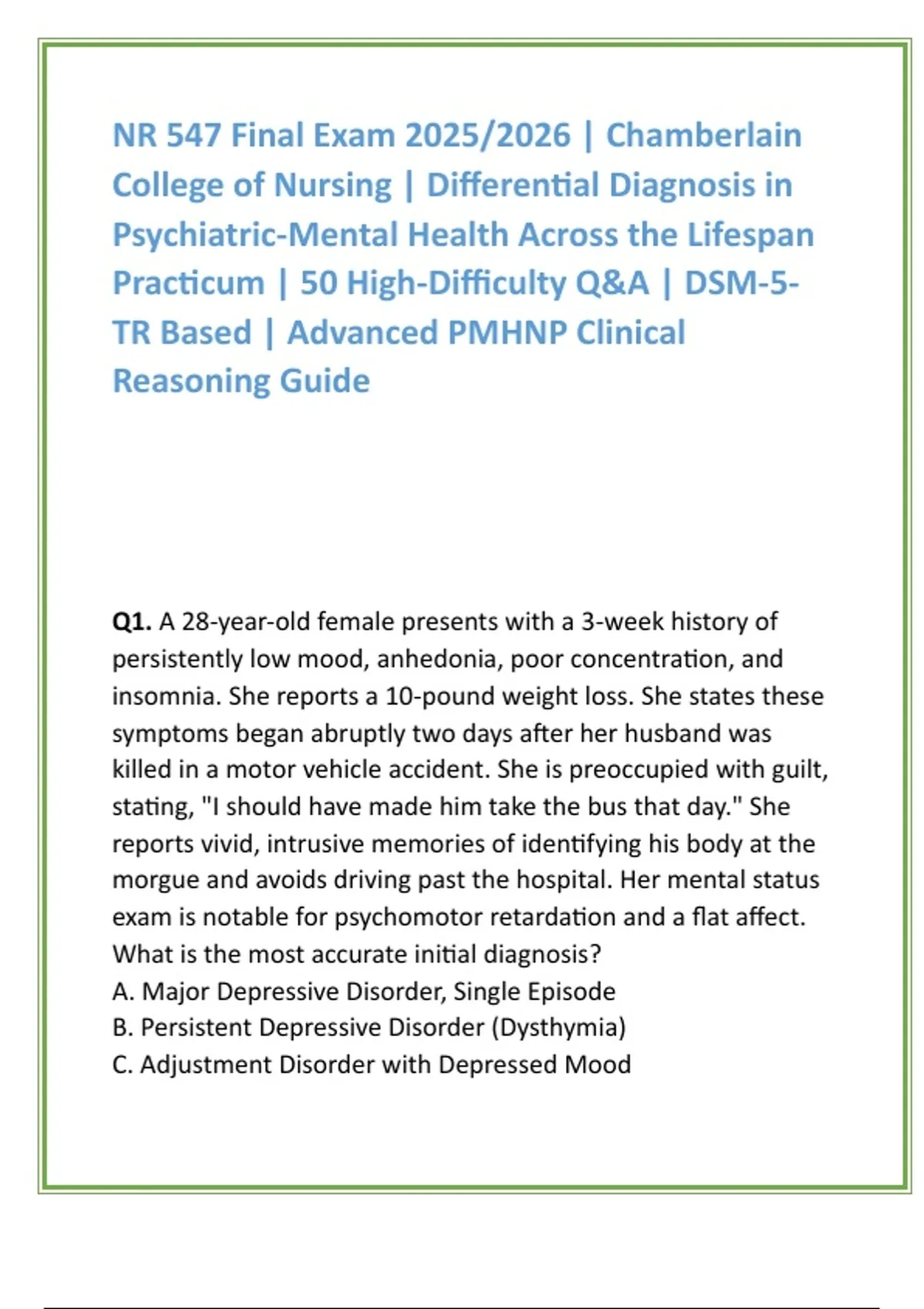 Practicum | 50 High-Difficulty Q&A | DSM-5-