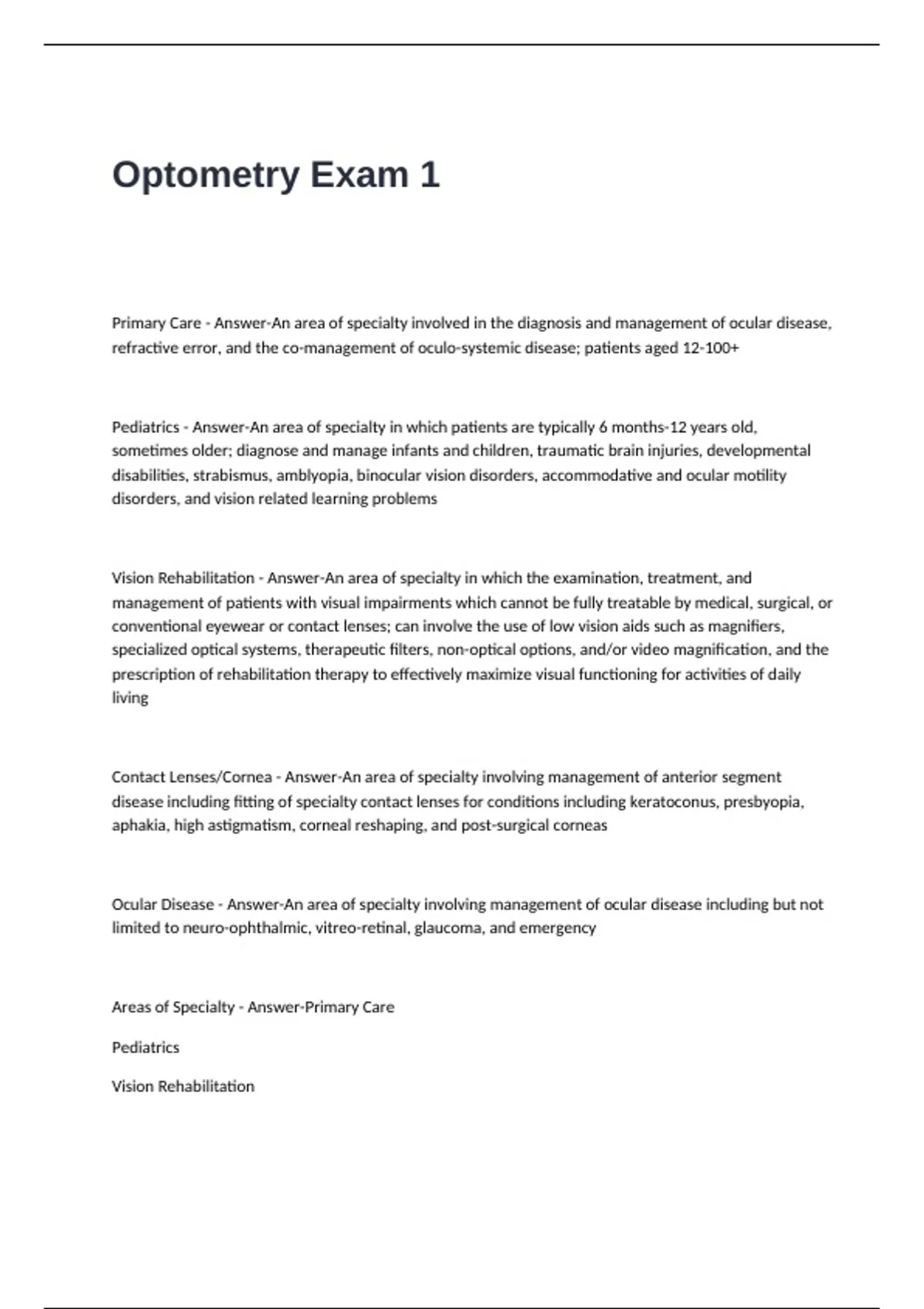 Primary Care - Answer-An area of specialty involved in the diagnosis and management of ocular disease,