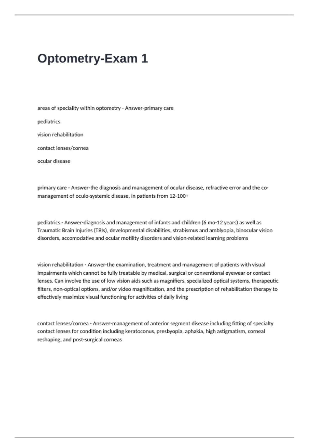 Answer-Optics/Refractive error, Binocular vision/Functional vision, and Ocular Health