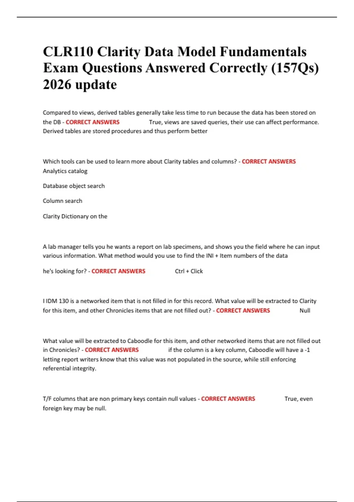 ,Why do null values exist in Clarity - CORRECT ANSWERS Not all fields are populated in