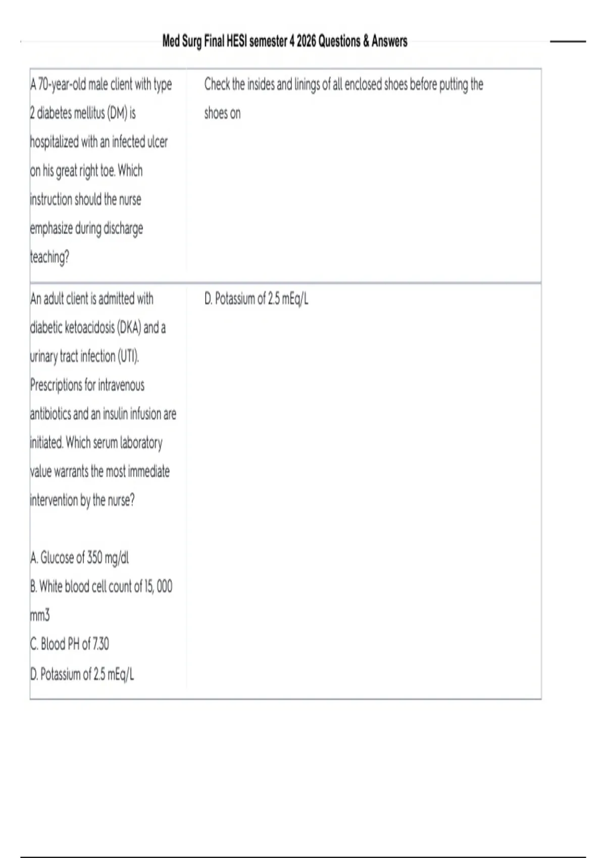 , Med Surg Final HESI semester 4 2026 Questions & Answers