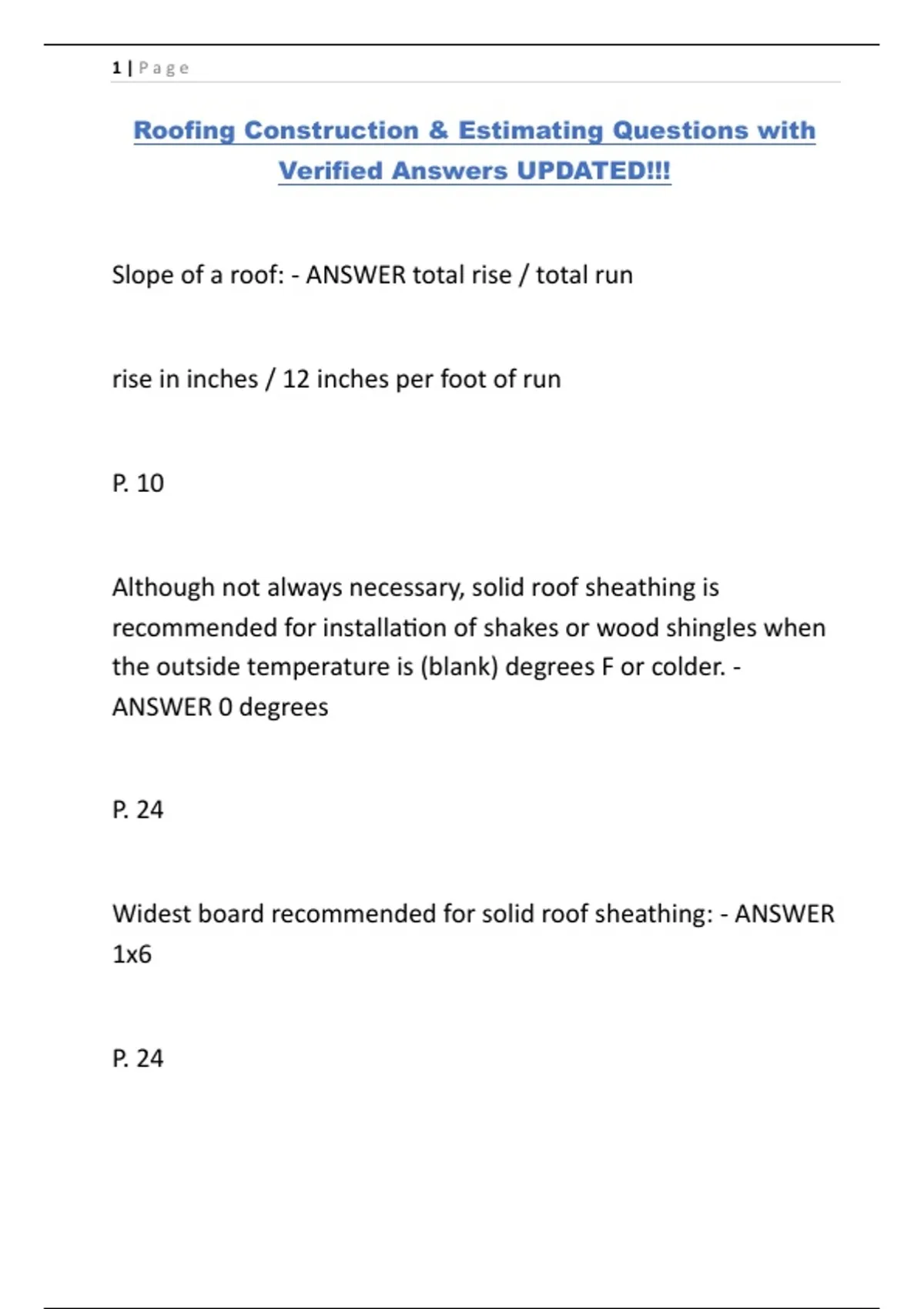Roofing Construction & Estimating Questions with Verified Answers UPDATED!!!.