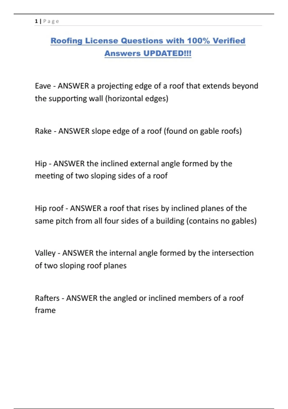 Roofing License Questions with 100% Verified Answers UPDATED!!!.