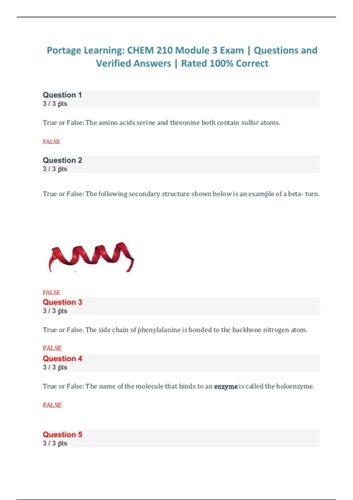 This document contains Portage Learning CHEM 210 Module 3 exam questions with fully verified answers. It focuses on the core chemistry concepts, problem-solving methods, and calculations assessed in Module 3, providing accurate solutions to support efficient review and exam readiness. The content is aligned with Portage Learning course objectives and structured for clear, high-yield study.