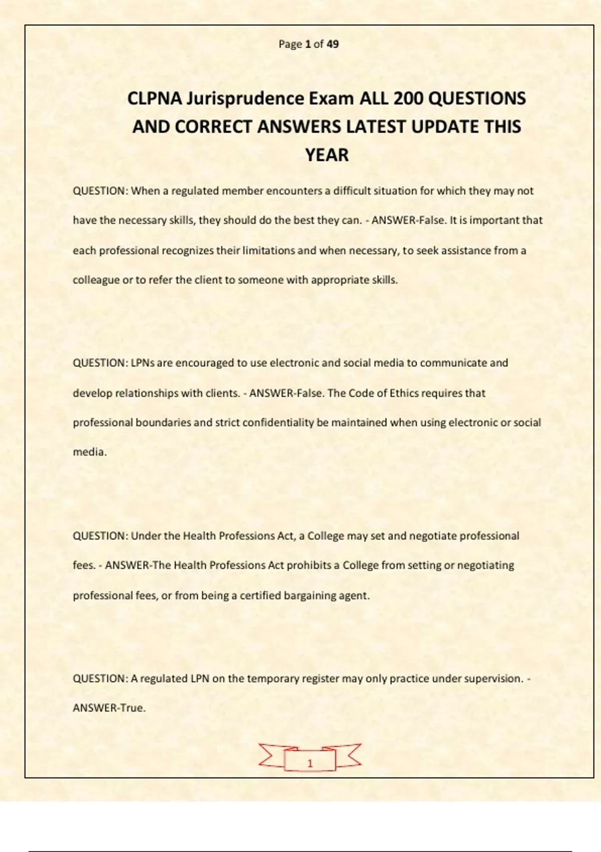 CLPNA Jurisprudence Exam ALL 200 QUESTIONS