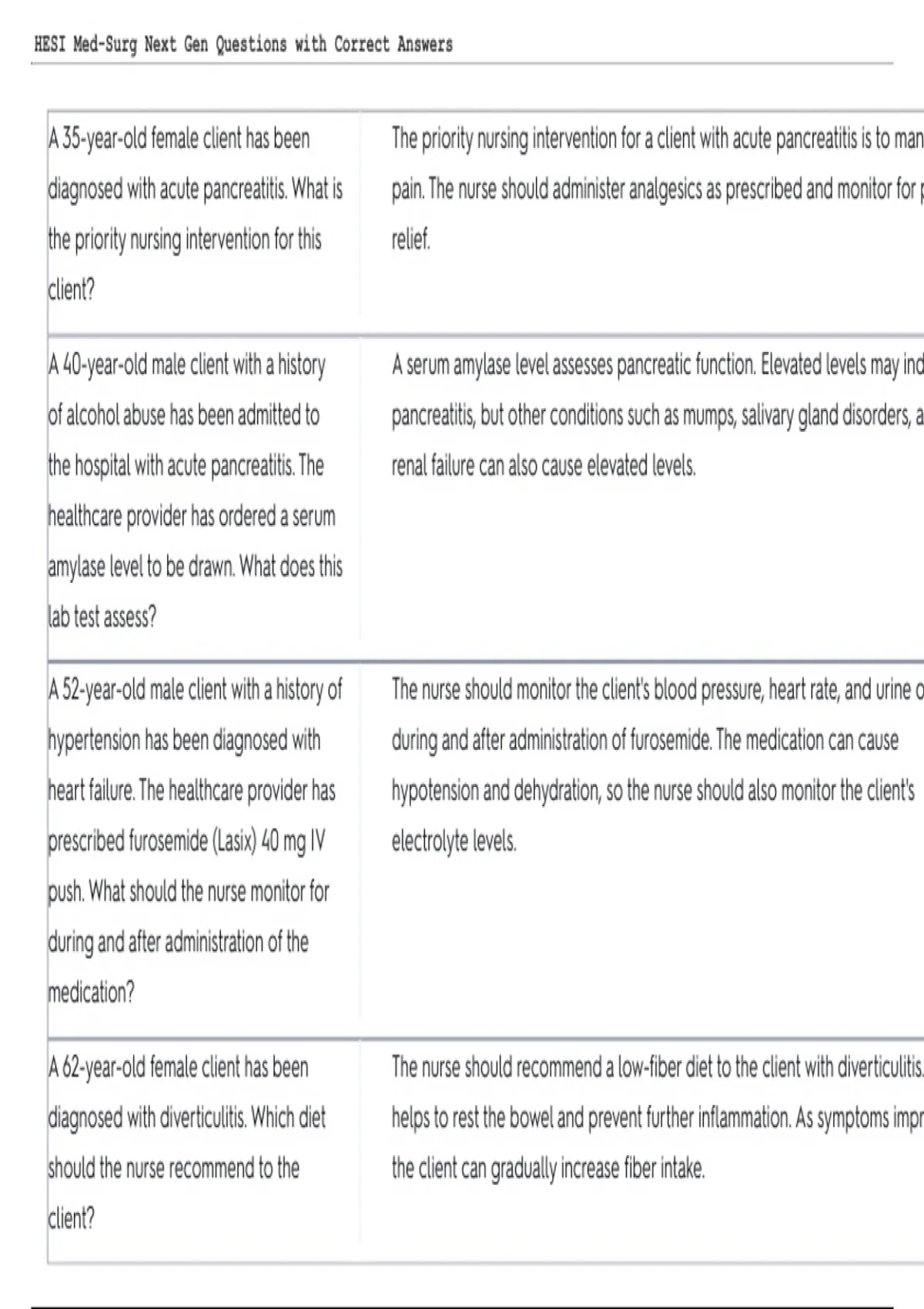 , HESI Med-Surg Next Gen Questions with Correct Answers