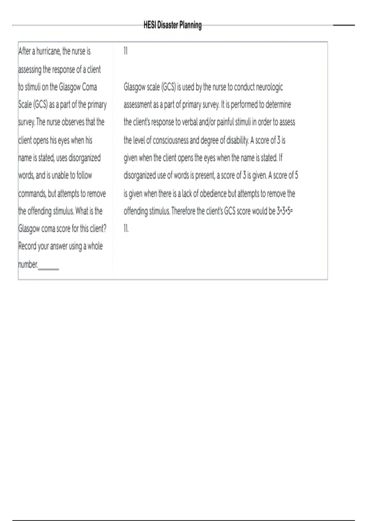 Glasgow coma score for this client? 11.