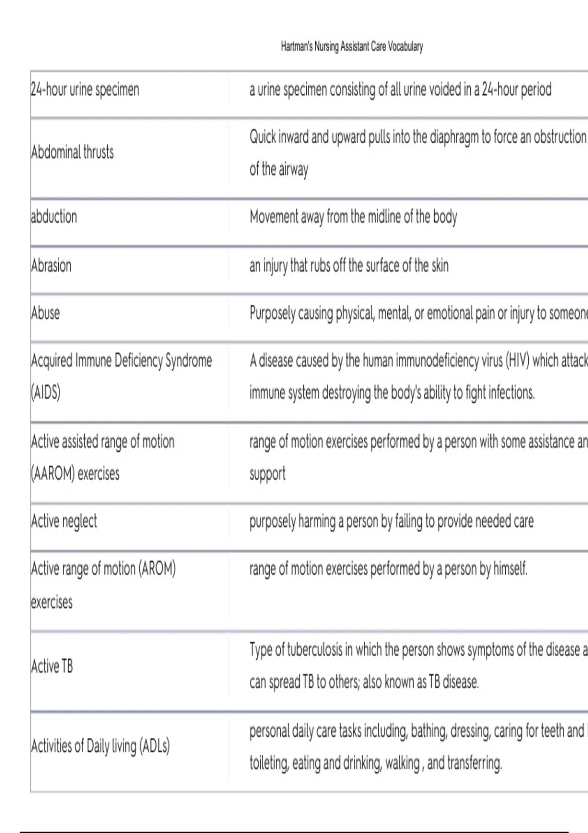 Hartman’s Nursing Assistant Care Vocabulary [2026/2027] Updated Version | Verified Terms & Detailed Rationales