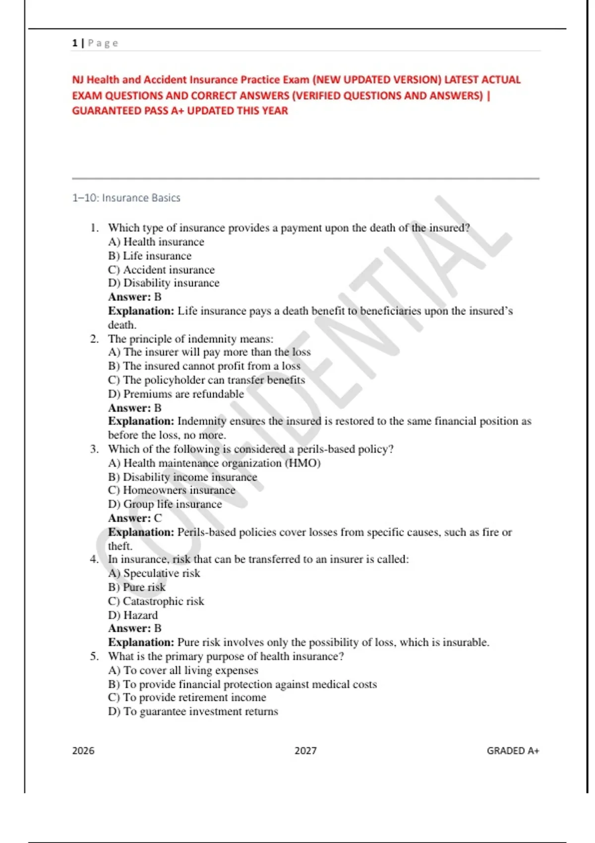 This NJ Health and Accident Insurance Practice Exam is designed to help candidates prepare effectively for the New Jersey insurance licensing examination. It includes up-to-date, exam-style multiple-choice questions with correct answers and clear explanations to reinforce learning. Content focuses on accident and sickness insurance principles, policy provisions, exclusions, underwriting, ethics, and New Jersey regulations. Each question is structured to mirror the format and difficulty level commonly found on state licensing exams. This practice exam is suitable for both first-time test takers and individuals retaking the exam. Updated for the current testing year, it provides a reliable and structured approach to exam preparation.