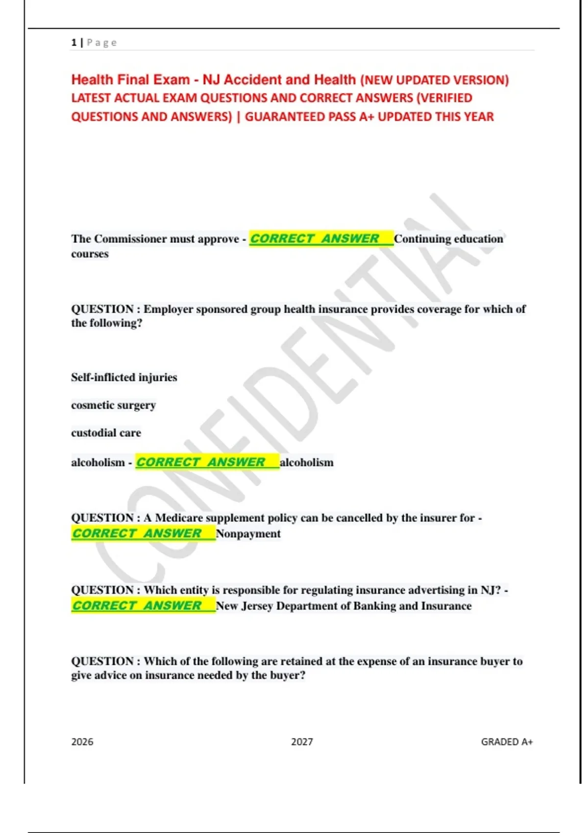 Health Final Exam - NJ Accident and Health (NEW UPDATED VERSION)