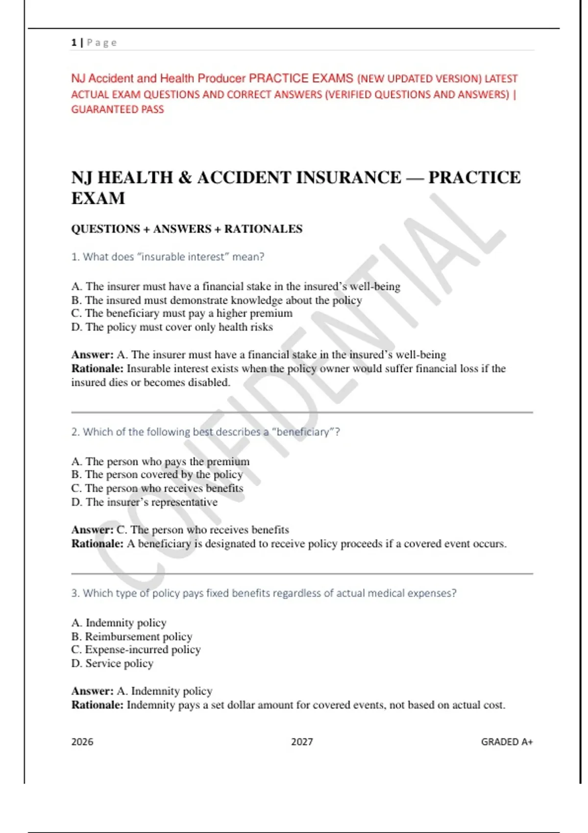 NJ Accident and Health Producer PRACTICE EXAMS (NEW UPDATED VERSION) LATEST