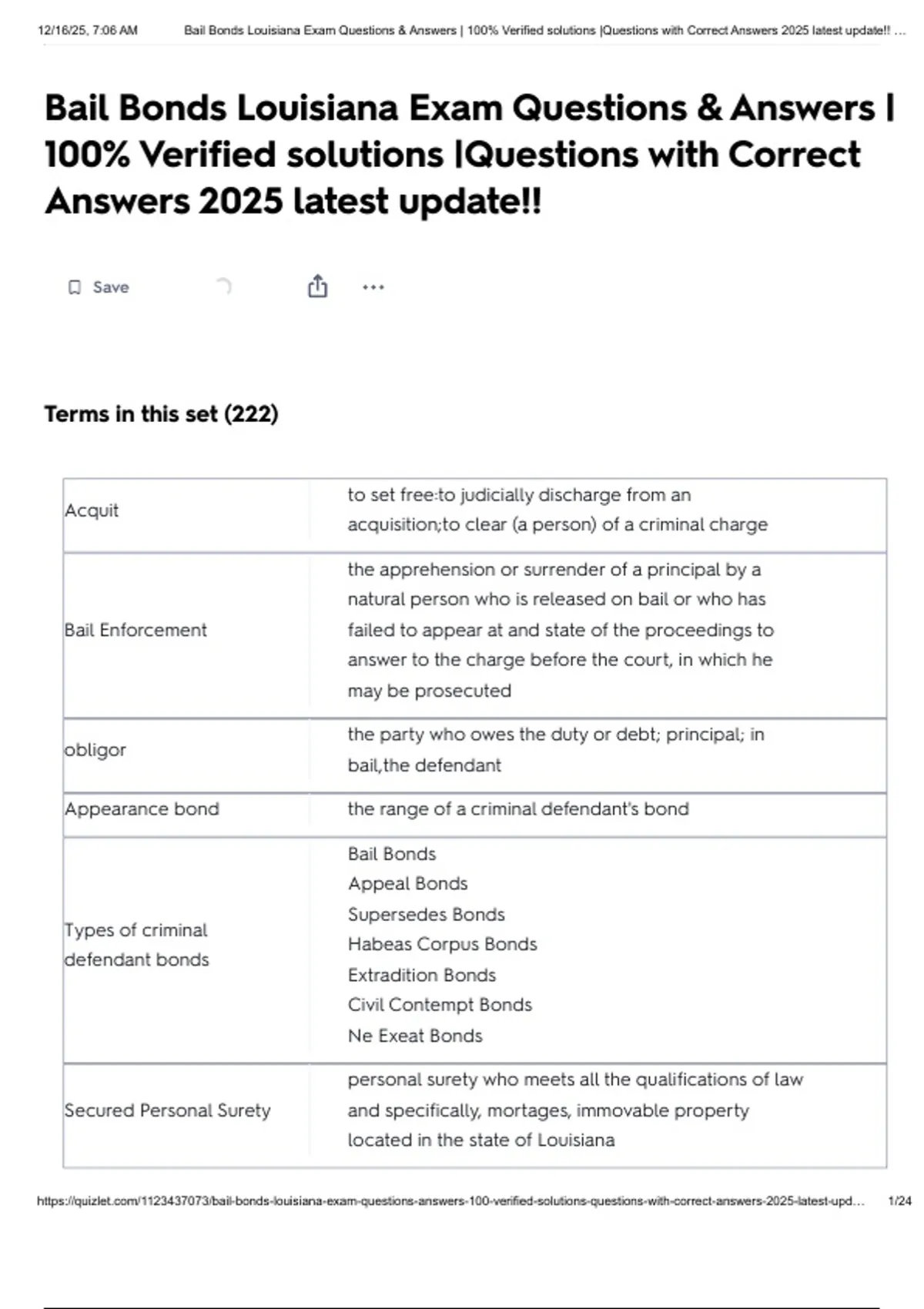 , 12/16/25, 7:06 AM Bail Bonds Louisiana Exam Questions & Answers | 100% Verified solutions |Questions with Correct Answers 2025 latest update!! …