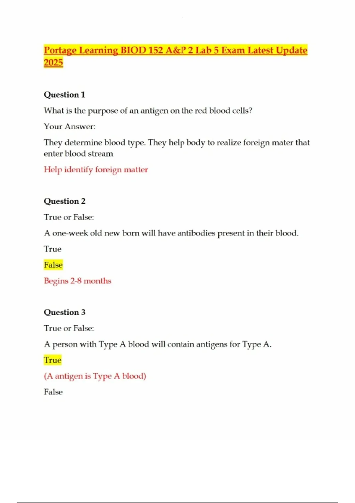 portage learning biod 152 ap 2 lab 5 exam latest