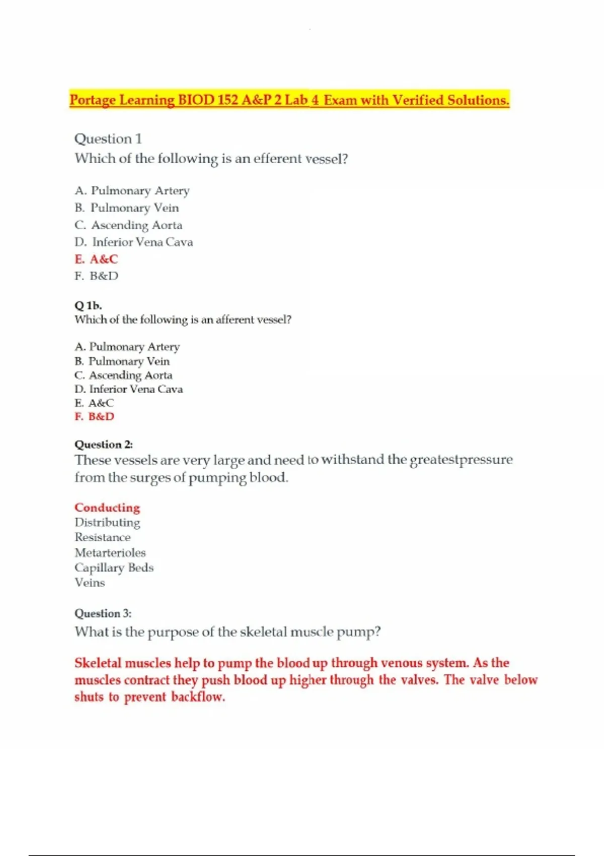 Portage Learning BIOD 152 A&P 2 Lab 4 Exam with Verified Solutions.