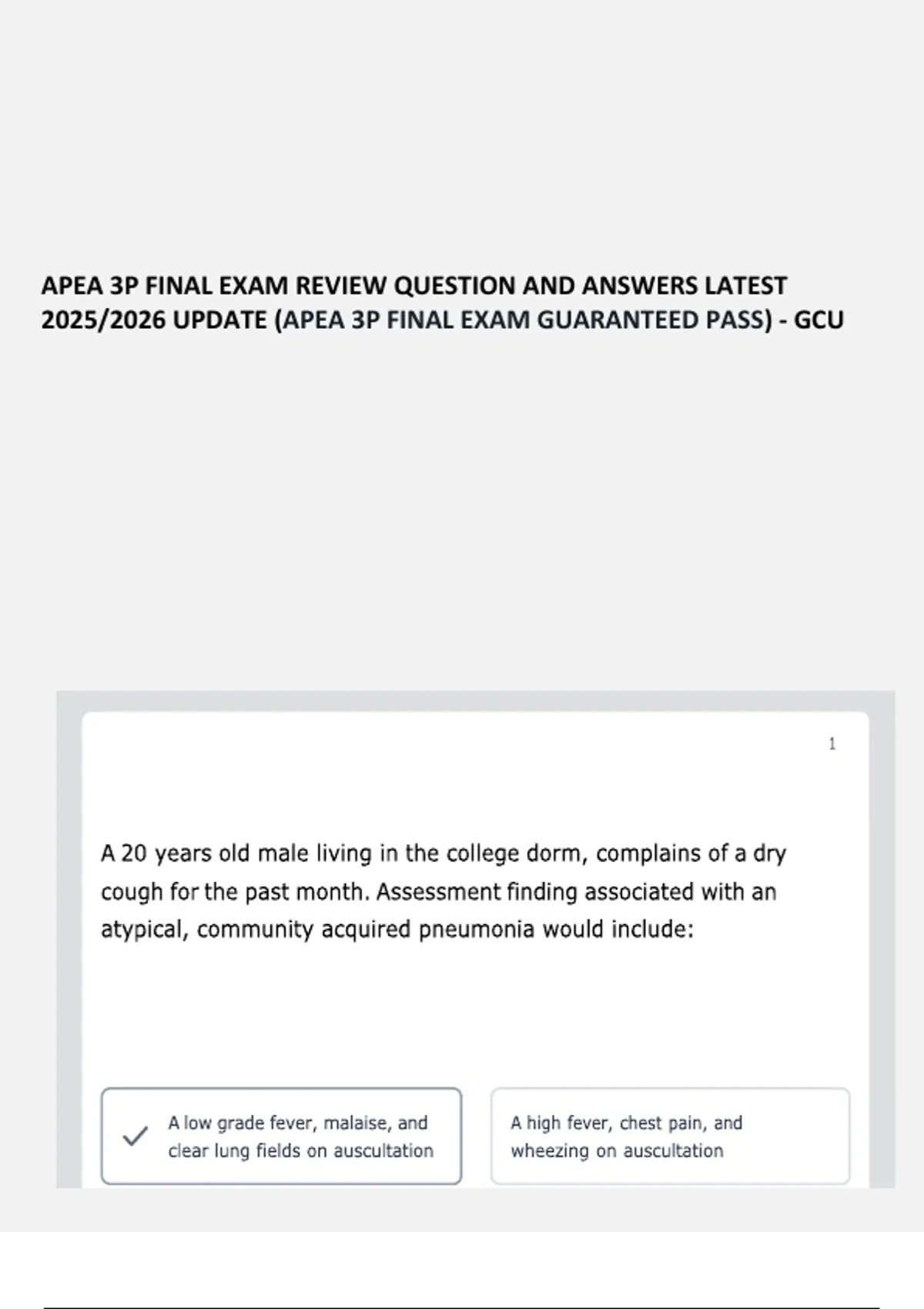 2025/2026 UPDATE (APEA 3P FINAL EXAM GUARANTEED PASS) - GCU