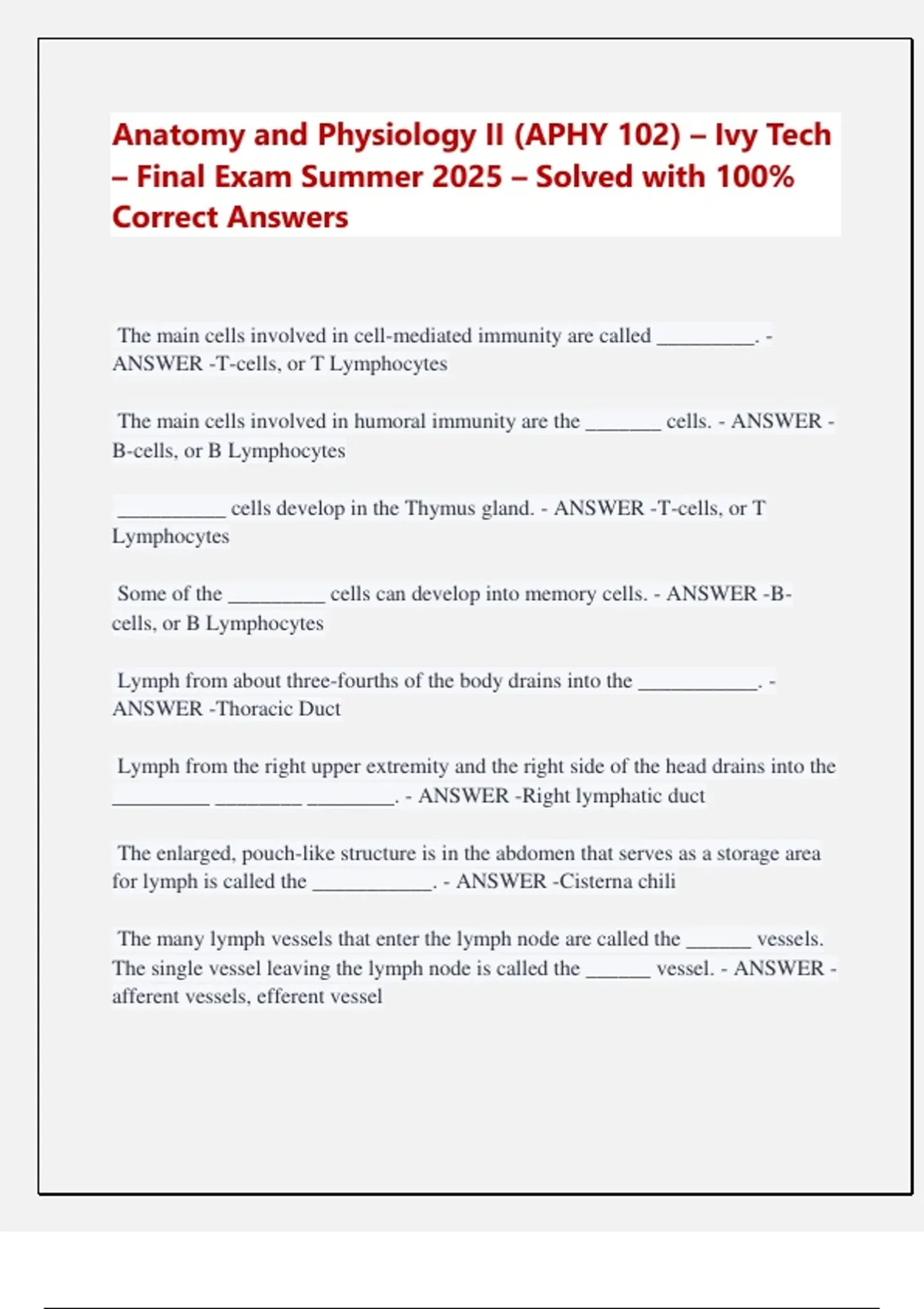 The main cells involved in humoral immunity are the _______ cells. - ANSWER -