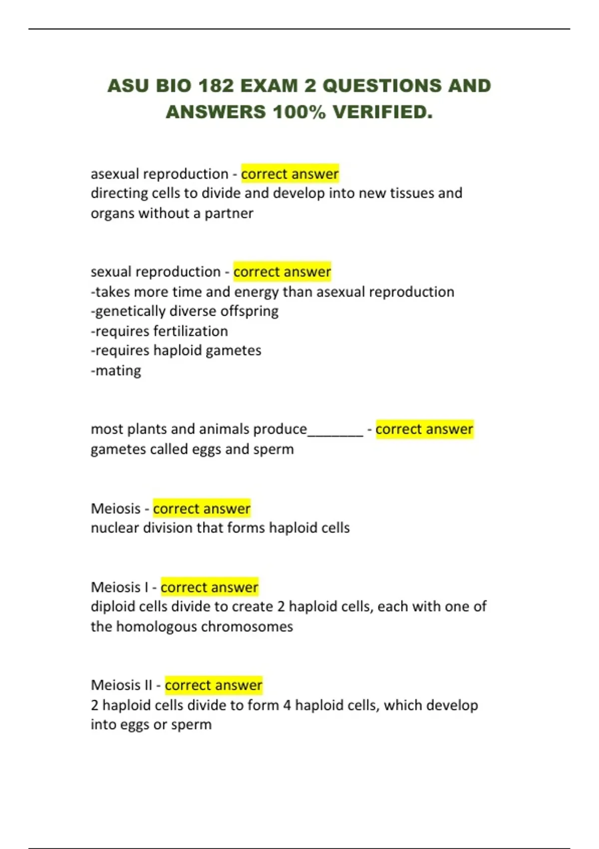 sexual reproduction - correct answer