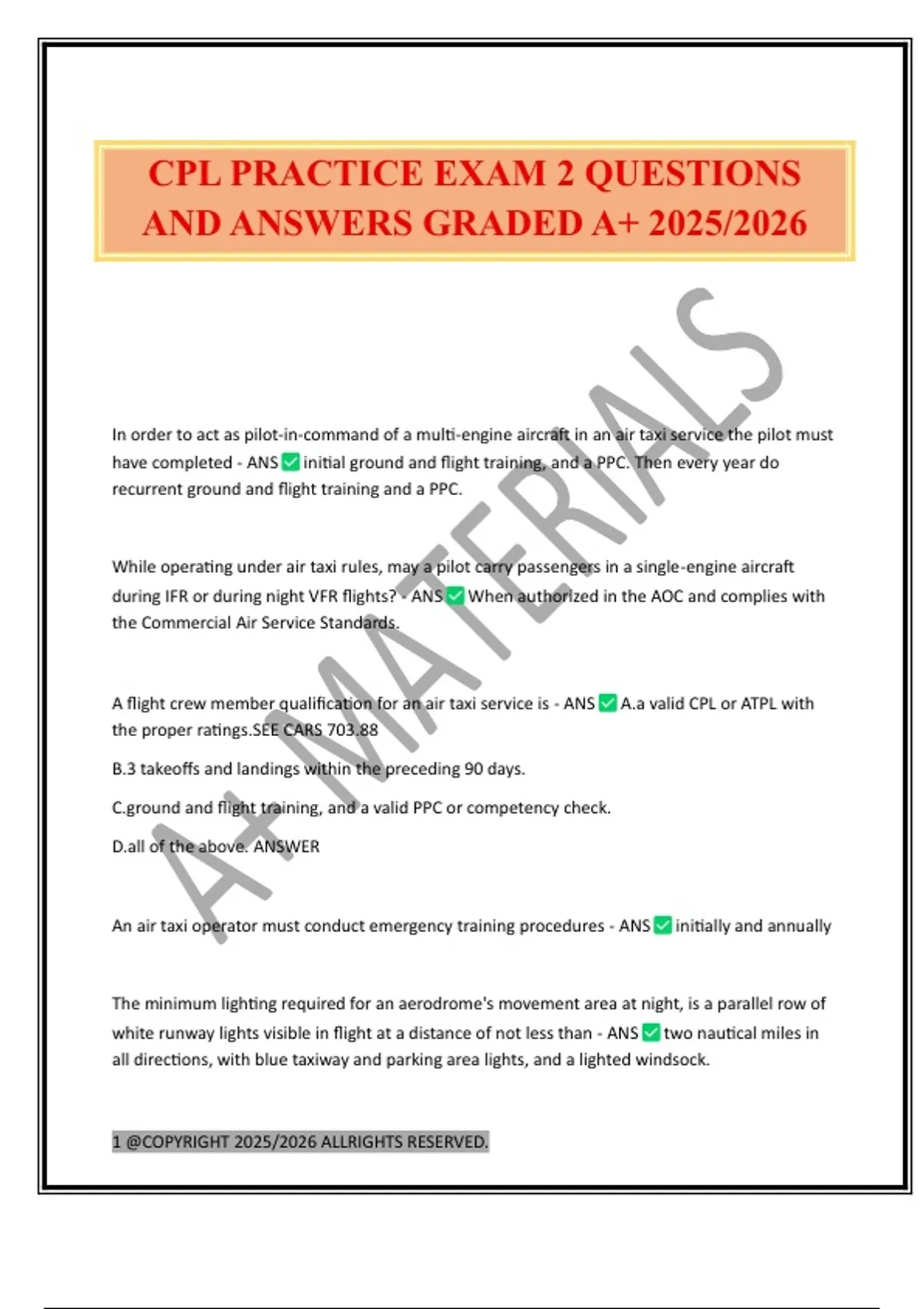 CPL PRACTICE EXAM 2 QUESTIONS
