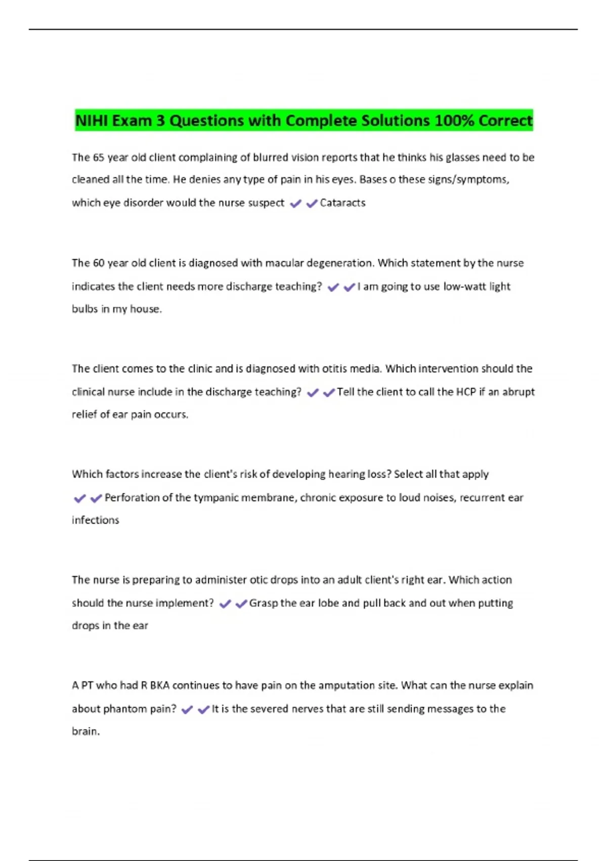 NIHI Exam 3 Questions with Complete Solutions 100% Correct