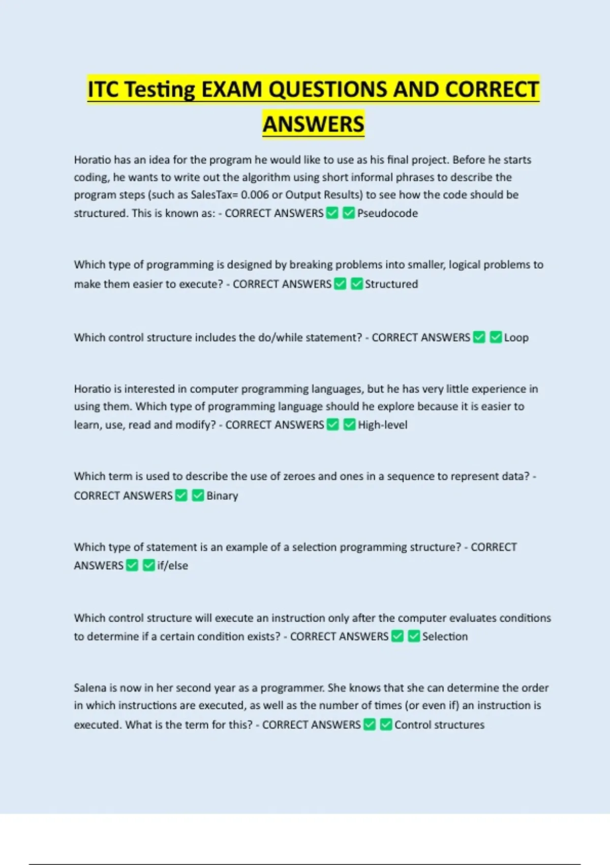 structured. This is known as: - CORRECT ANSWERS Pseudocode