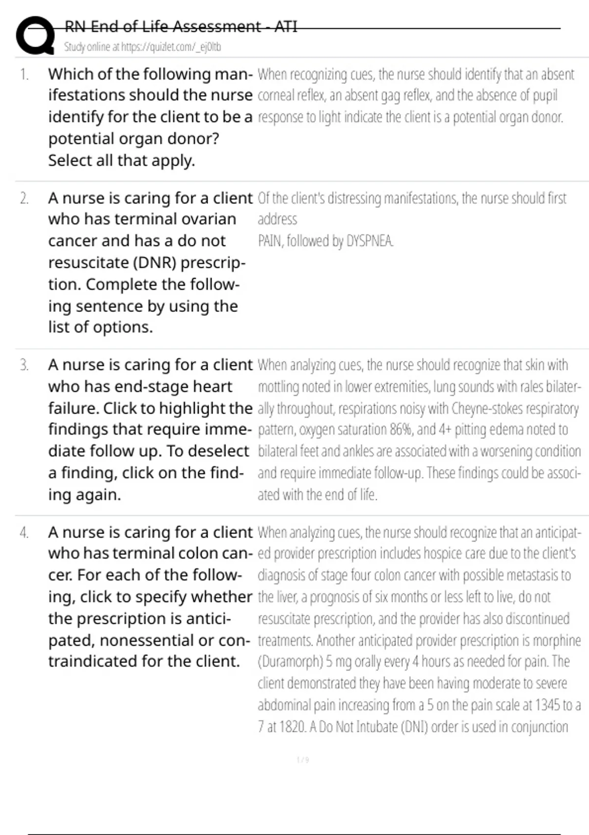 RN End Of Life Assessment - ATI