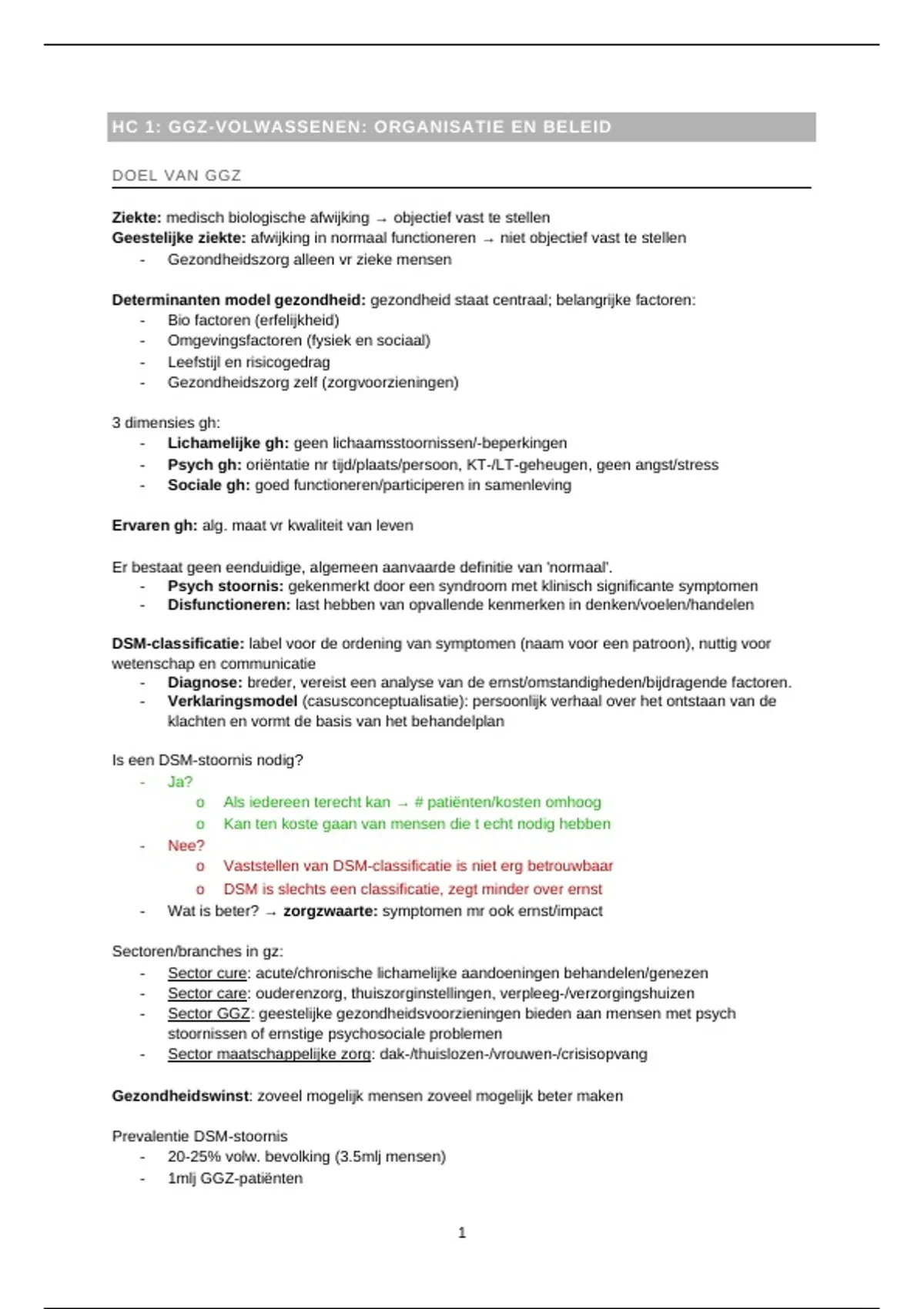HC 1: GGZ-VOLWASSENEN: ORGANISATIE EN BELEID