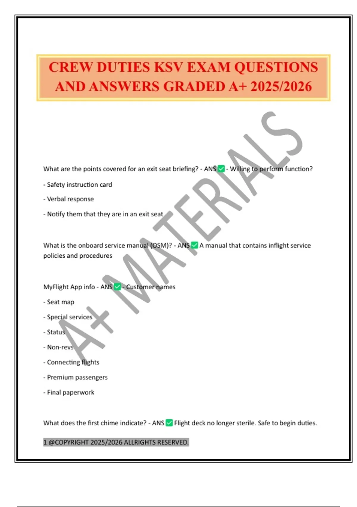 CREW DUTIES KSV EXAM QUESTIONS AND ANSWERS GRADED A+ 2025/2026