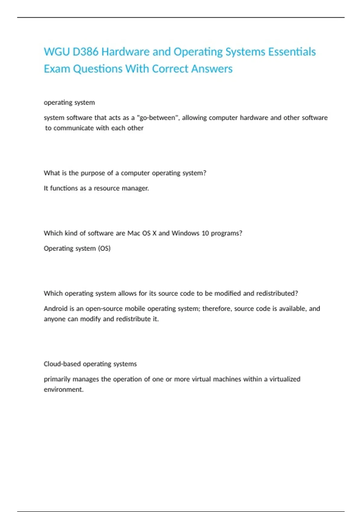 WGU D386 Hardware and Operating Systems Essentials