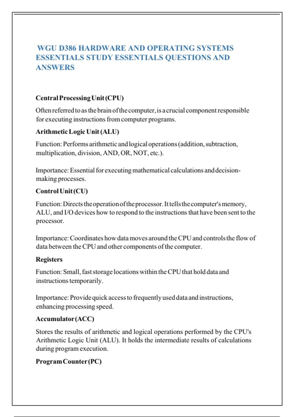 WGU D386 HARDWARE AND OPERATING SYSTEMS